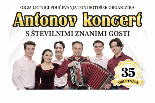 Glasbeni virtuoz Toni Sotošek praznuje 35 let poučevanja diatonične harmonike. Zato je pripravil že tradicionalni Antonov koncert, na katerem je združil svoje bivše in sedanje učence ter številne glasbene prijatelje. Na koncertu so nastopili Toni Sotošek z družino! Ob njihovi glasbi pa so zaplesali plesalci s Tirolske! Meh so raztegovali tudi harmonikarji Tonija Sotoška, Boštjana Povšeta in Janeza Lekšeta, zapel nam je pa otroški pevski zbor OŠ Koprivnica ter Ansambel Jarica z Romanom Drstvenškom ter Ansambel Banovšek. Zapeli so tudi vsestranski Robert Petan, Marko Pezdirc, Dušan Topolovec ter Simona in Eva Kokot. Kot vsako leto, so s svojo uigranostjo koncert obogatili tudi glasbeniki Big Banda Krško. Posebni gostje pa so koncertu dodali piko na i, to so bili Modrijani in Andrej Bergant. Program je hudomušno povezovala jezična Mama Manka. Oglejte si posnetek Antonovega koncerta na kulturni praznik ob 18. uri samo na TV Veseljak Golica.